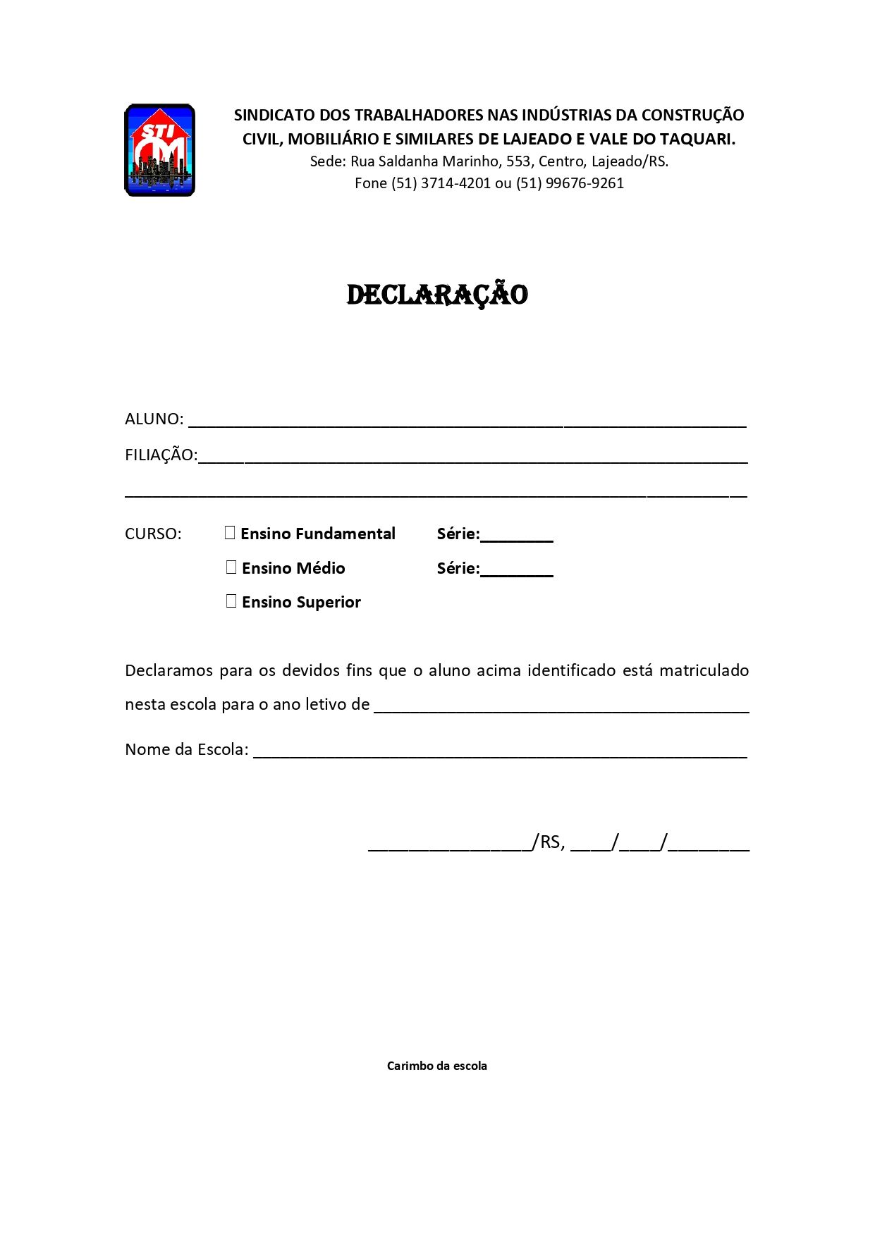 Endereço: Rua Saldanha Marinho, 553 Lajeado - RS CEP: 95900-082